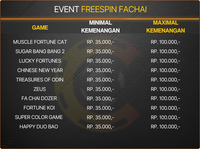 - Kemenangan maksimum per taruhan adalah 5,000,000.